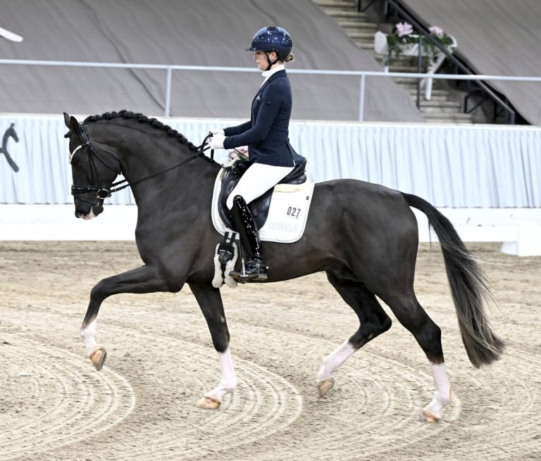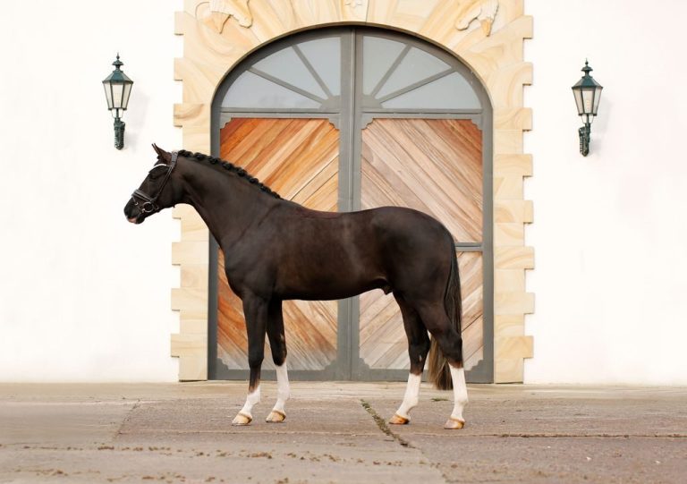 Souverän beherrschte Bonds in Gold das Geschehen der DSP-Hengsttage 2025 in München-Riem und wurde als unumstrittener Siegerhengst gekrönt. Auf der anschließenden Auktion international heiß umworben, wechselte er zu einem Spitzenpreis in die Hände seiner Besitzer, dem Gestüt Pramwaldhof aus Österreich. Im Format eines Hauptbeschälers stehend, typstark, in strahlender Dunkelfuchsjacke und bedeutend aufgemacht, verfügt er über ein herausragendes Grundgangarten-Potenzial welches er im Kurz-VA-Test 2025 in Verden unter Sina Aringer eindrucksvoll unter Beweis stellen konnte. Mit der Gesamtnote von 8,43 platzierte er sich im oberen Feld der Konkurrenz und erhielt für seine Leistungsbereitschaft unter anderem die Traumnote 9,0.